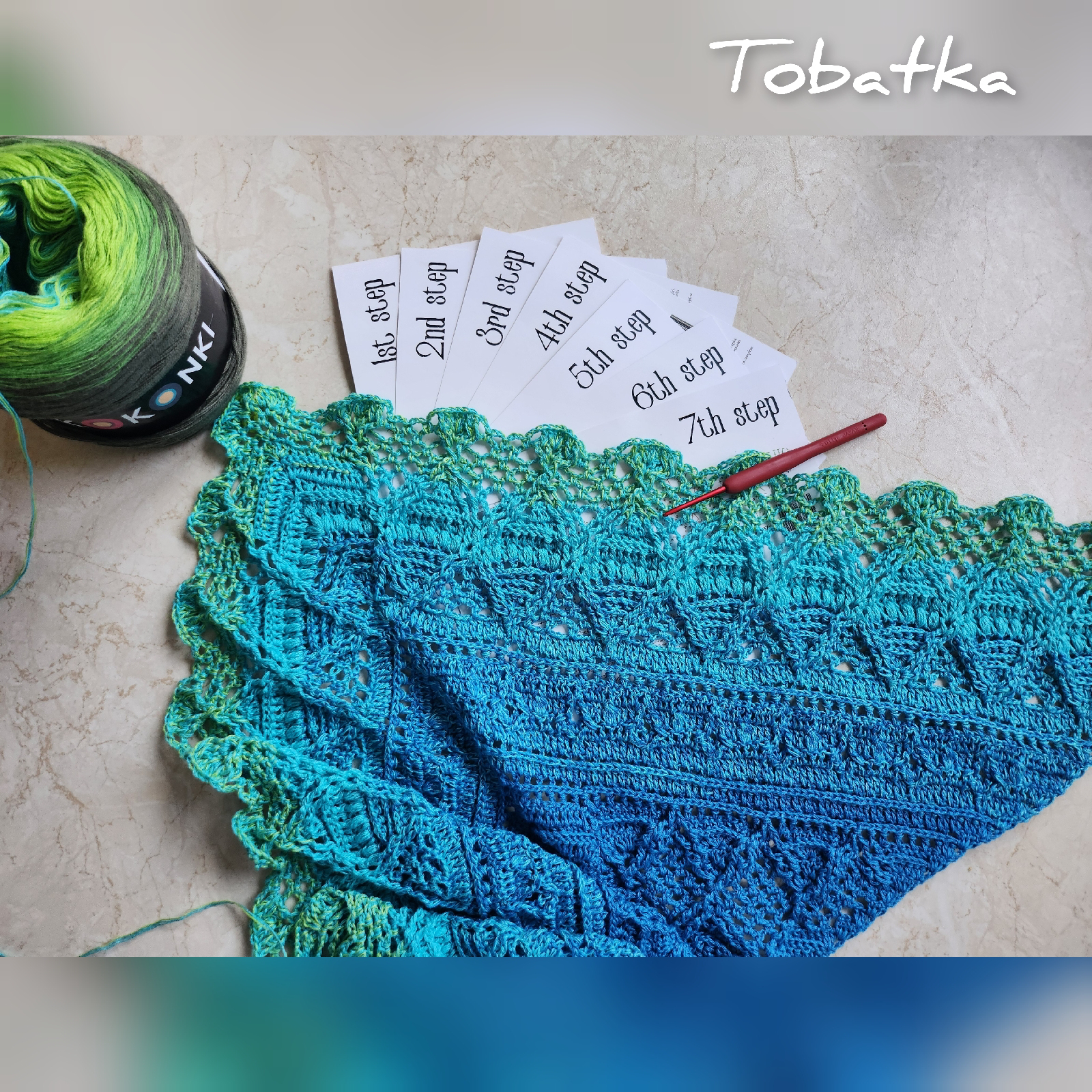 Ta chusta przyciągnęła moją uwagę nietypowym sposobem przerabiania - modułami raz na jednym, raz na drugim boku. Nie potrafiłam przejść obok niej obojętnie, choć obiecałam sobie wyhamować z chustami (mam ich za dużo 🙈).